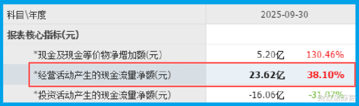 但真正“炸裂”的是现金流:销售商品收到的现金净额高达23.62亿,同比增长38.10%,是同期净利润的近5倍!