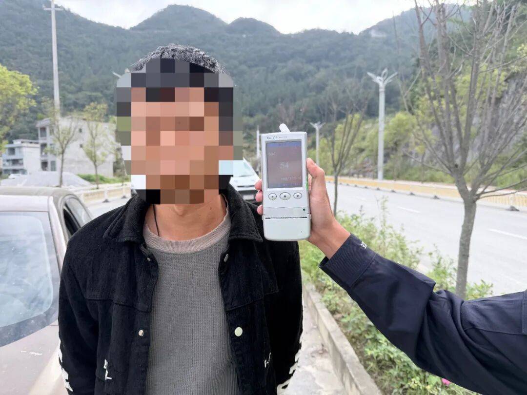 10月23日,百色市乐业县公安局交通管理大队执勤民警在乐业大道对一辆小客车例行检查,刚一靠近车窗,一股酒气扑面而来,执勤民警利用呼气式酒精检测仪对涉嫌酒驾的驾驶人进行检测,结果为54mg/100ml,属于饮酒后驾驶机动车。